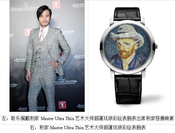 耿乐佩戴积家Master Ultra Thin艺术大师超薄珐琅彩绘表腕表出席积家慈善晚宴。制表师将《戴灰毡帽的自画像》缩绘成珐琅表盘,高雅的艺术与精湛的技艺相融合,赋予腕表独特而又深厚的内蕴,脱离世俗,诠释了高贵优雅的现代绅士。
