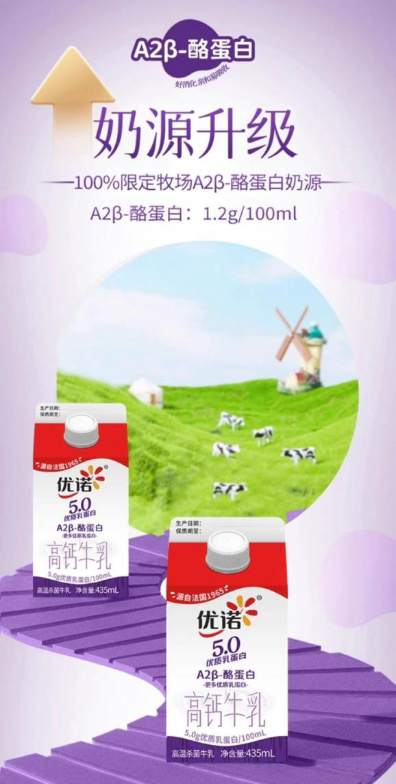 更重要的是,这一突破并非偶然。早在2020年,优诺便通过4.0+牛乳,首次在中国市场建立起“以蛋白质含量为核心指标”的产品命名逻辑。从3开头的蛋白质含量到4.1,再到5.0,这条路径本身就构成了一条清晰的技术与消费教育轨迹。